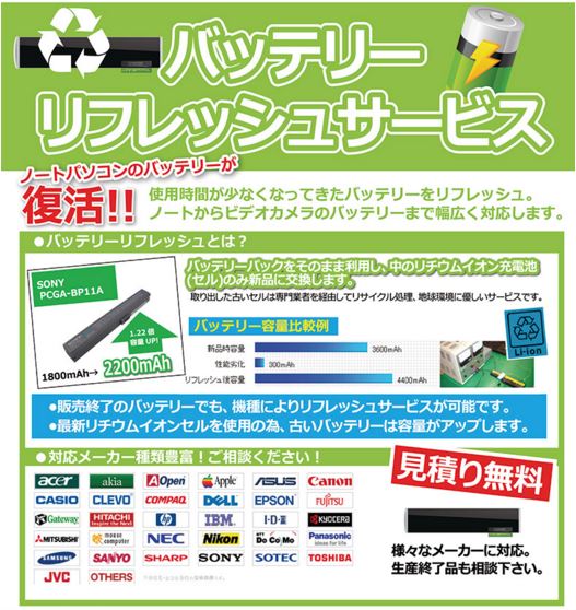 新着商品 パソコン バッテリー セル交換の専門店 バッテリーリフレッシュ