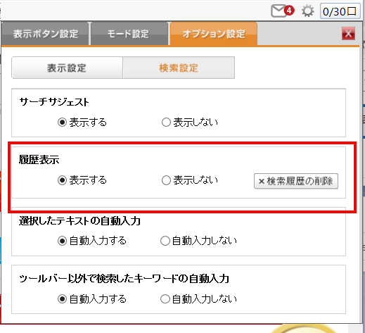 検索結果画面の検索履歴の表示をオフにしたい