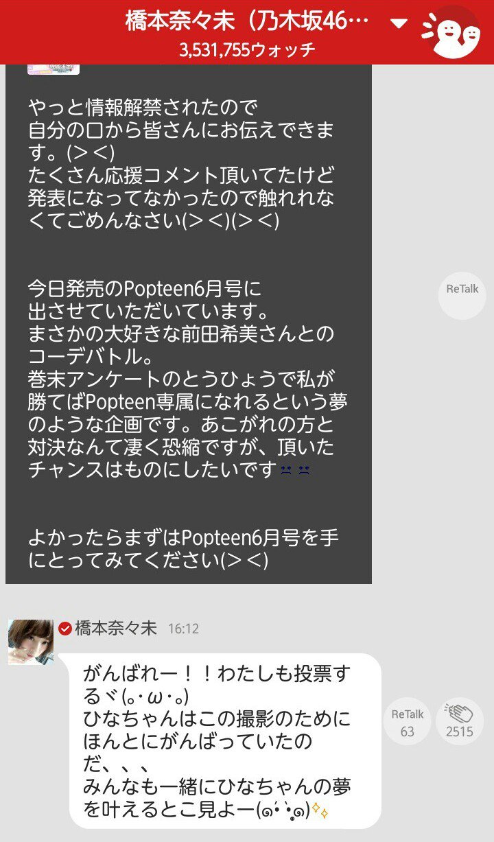 川後陽菜専属モデル広報アカウント On Twitter 川後陽菜さんの専属モデルをかけた対決の時 橋本奈々未 がんばれー わたしも投票する ひなちゃんはこの撮影のためにほんとにがんばっていたのだ みんなも一緒にひなちゃんの夢を叶えるとこ見よー By 橋本奈々未