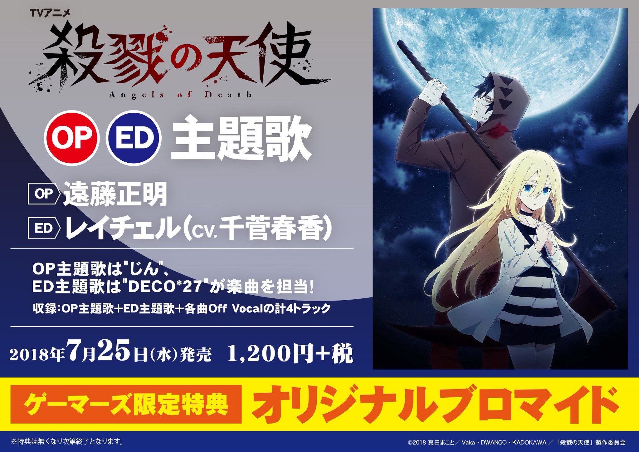 ট ইট র ゲーマーズオンラインショップ 主題歌 殺戮の天使 Op Ed主題歌 遠藤正明 レイチェル Cv 千菅春香 ご予約受付中 ゲーマーズ限定特典は オリジナルブロマイド です Https T Co Jcxj0e6vnb